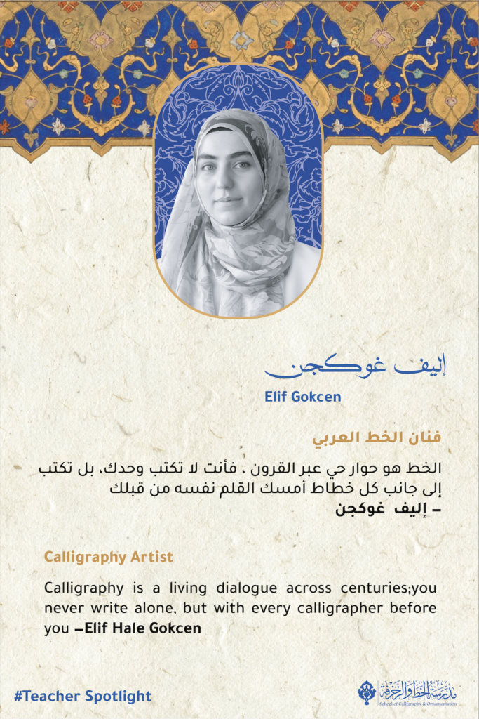 Specializing in the elegant curves of Thuluth, Naskh, and Jali Thuluth, Elif is drawn to the sheer timelessness of these scripts. To watch her write is to watch time fold in on itself. For her, sitting at the easel is never a solitary act. It is an active, breathing engagement with an intellectual ecosystem that has survived and evolved over centuries.