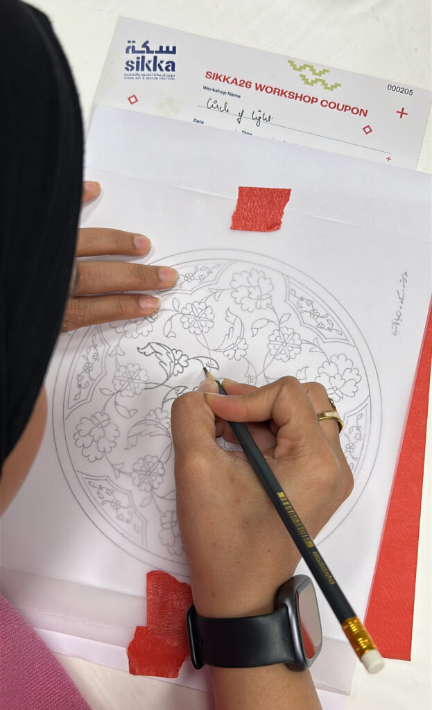 شاركت مدرسة الخط والزخرفة في فعاليات مهرجان سِكّة من خلال تقديم ورشة متخصصة بعنوان «إتقان تصميم الشمسة بالذهب»، والتي شهدت حضورًا لافتًا من المهتمين بالفنون الإسلامية وفنون المخطوطات، في أجواء اتسمت بالتركيز والتفاعل الإيجابي. استهلت الورشة بتعريف المشاركين بمفهوم «الشمسة» بوصفها أحد العناصر الزخرفية المركزية في المخطوطات الإسلامية، حيث تتوسط الصفحة وتُبنى وفق نظام هندسي […]
