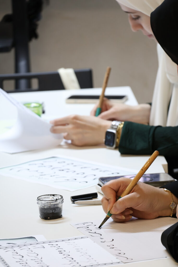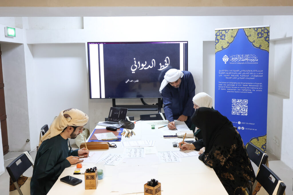 تضمّنت الجلسة جانباً عملياً أتاح للحضور تجربة كتابة الحروف بخط الديواني تحت إشراف مباشر، مع التركيز على ضبط النسب، والتحكم في زوايا القلم، وتحقيق التوازن في المساحات بين الحروف. وأسهم هذا التفاعل في تعزيز فهم المشاركين للبنية الداخلية للخط، وكيفية توظيفه في أعمال فنية معاصرة.