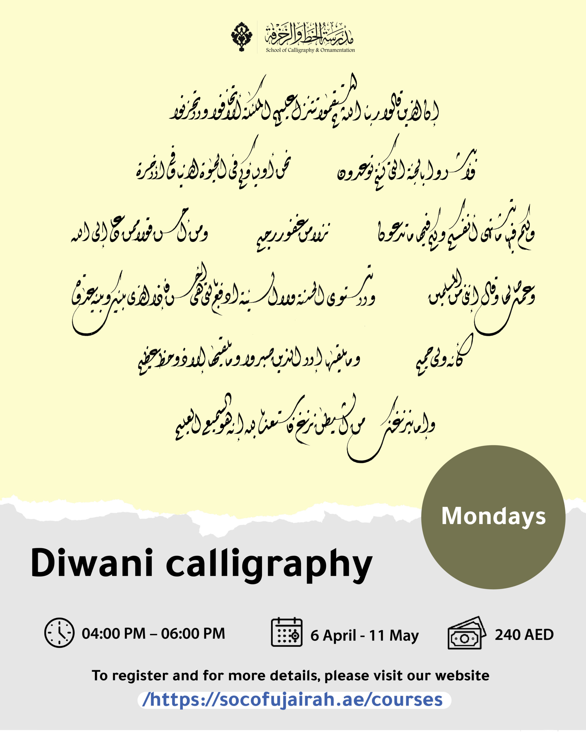 This course aims to help participants build a strong foundation in the art of Diwani calligraphy and understand the aesthetic and geometric principles behind this style of Arabic calligraphy.