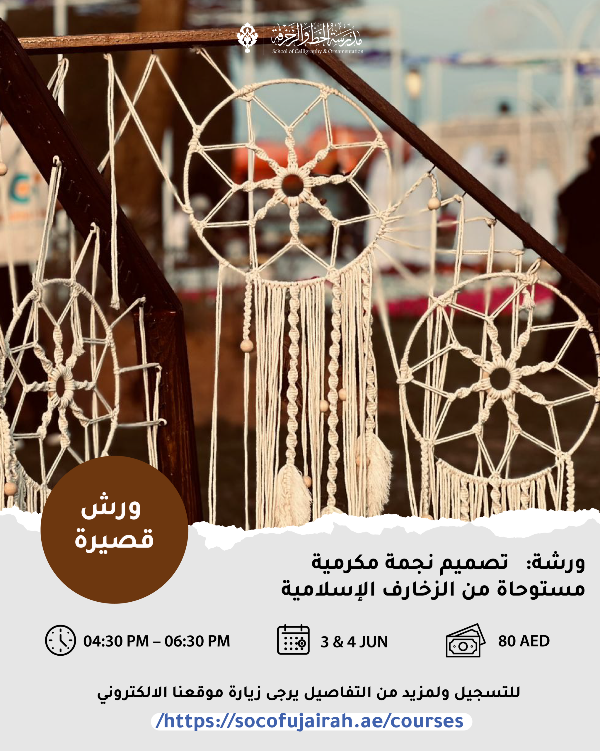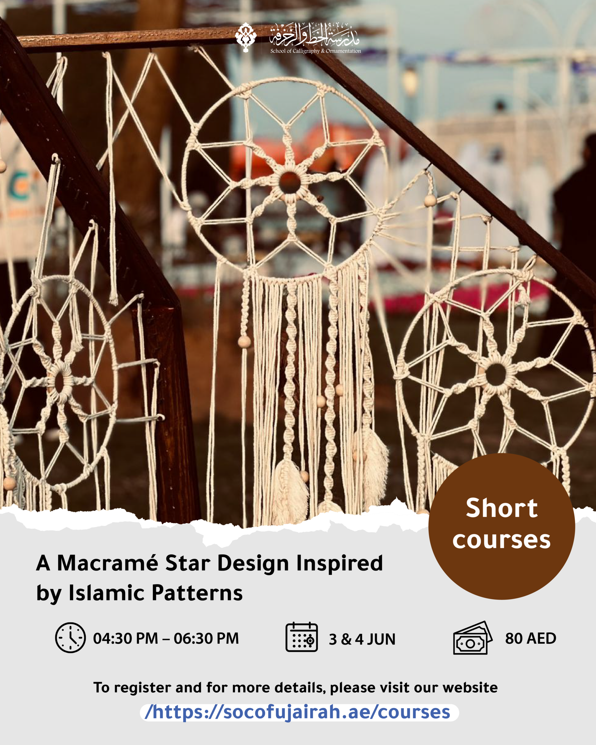 This creative workshop introduces participants to the art of macramé through the design of an Islamic-inspired decorative star.