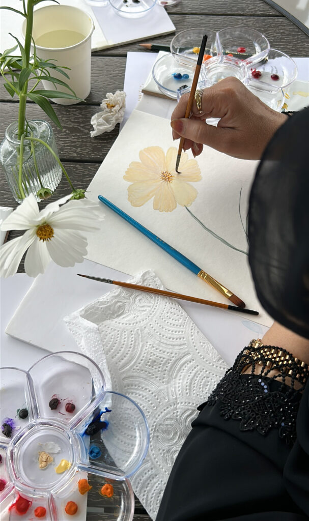 في أجواء تنبض بالجمال والهدوء، نظّمت مدرسة الخط والزخرفة ورشة فنية بعنوان «الرسم من وحي الطبيعة» في مزرعة الورد برأس الخيمة، حيث عاش المشاركون تجربة إبداعية امتزج فيها الفن بسحر الطبيعة